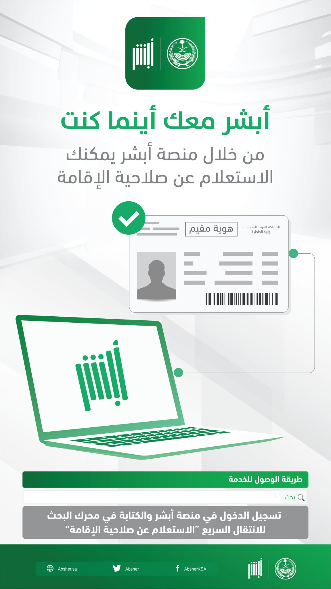 أبشر On Twitter استعلم عن صلاحية الإقامة إلكتروني ا عبر حسابك في منصة أبشر Https T Co Snpbew6yzq أبشر وأنت بالبيت