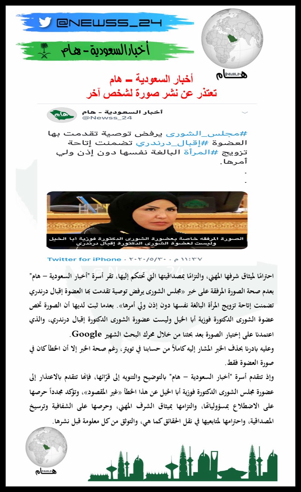 أخبار السعودية هام Pa Twitter أسرة أخبار السعودية هام تعتذر عن نشر صورة لشخص آخر