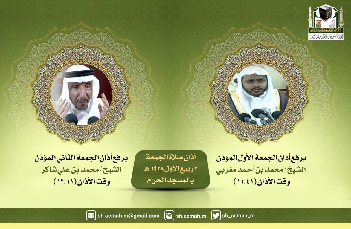 أفانين القرآن Twitterren مؤذنا صلاة الجمعة ٣ ربيع الأول ١٤٣٨هـ بالمسجد الحرام
