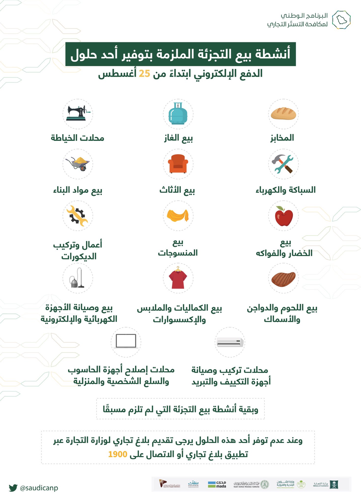 البرنامج الوطني لمكافحة التستر التجاري On Twitter ابتداء من 25 أغسطس ت لزم كافة أنشطة التجزئة التي لم تلزم سابق ا وبذلك تصبح كافة الأنشطة التجارية م لزمة بتوفير أحد حلول الدفع الإلكتروني ضمن مبادرة
