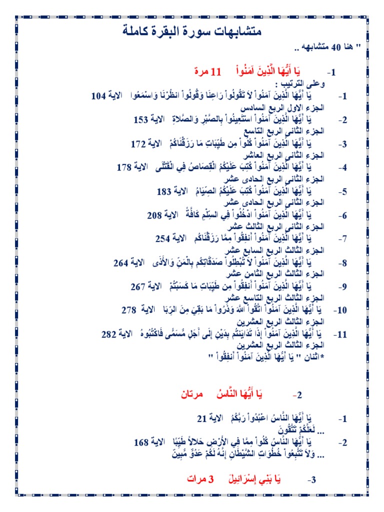 متشابهات سوره البقره مع نفسها البسيــط في علــم التجــويــد فيسبوك