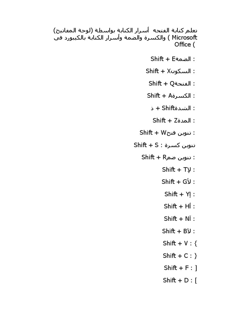كل اختصارات الكيبورد لوحة المفاتيح وكتابة الحركات بالعربي وتشكيل الكلمات في خمس ورقات فقط