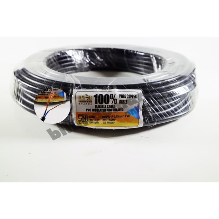 Hwgb Kabel Listrik Serabut 2 X 0 75 Mm 25 Meter 100 Pure Copper Sni Shopee Indonesia