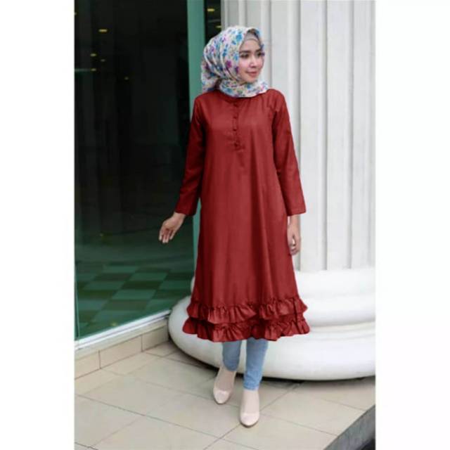 Tunik Rabia Bahan Twiscone Kancing Depan Aktif Ld 96cm Pj 98 Fit To L Hv Shopee Indonesia