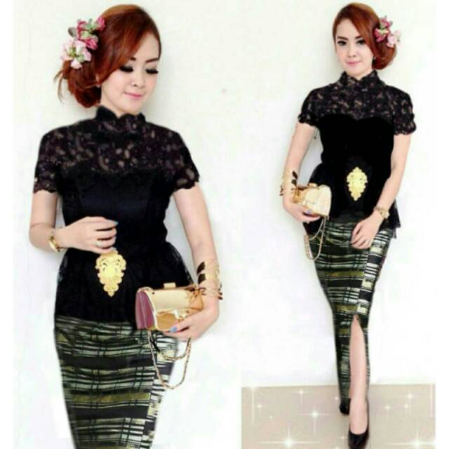 Srikandi Kebaya Brukat Hitam Bahan Atasan Brukat Rok Songket Fit L Hv Shopee Indonesia