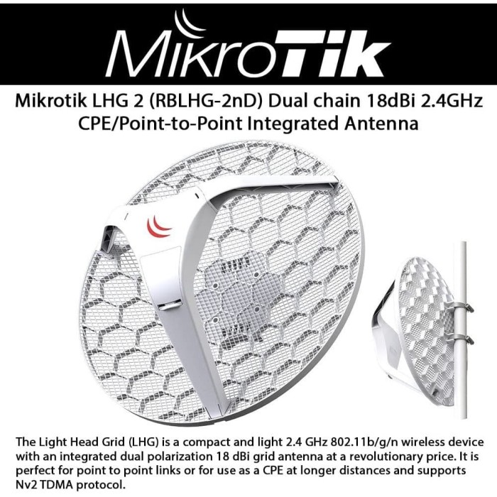 Mikrotik Rblhg 2nd Lhg 2 Dual Chain 2 4ghz 802 11n 18dbi Access Point